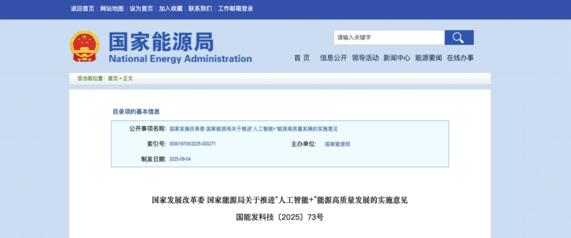 9月4日,国家发改委与国家能源局联合发布的《推进“人工智能+”能源高质量发展的实施意见》,吹响了“人工智能+能源”全面落地的号角。这份文件不仅是能源行业的政策指引,更是对未来中国能源体系重构的路线图。