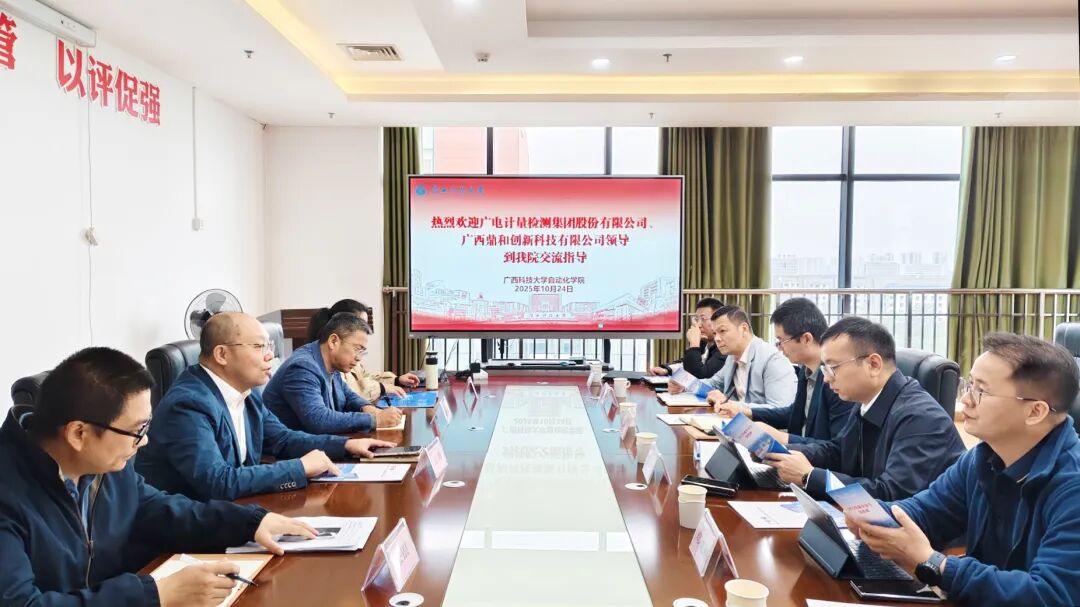 2025年10月24日,广西鼎和创新科技有限公司(以下简称“鼎和创新科技”)携手战略伙伴广电计量检测集团股份有限公司(以下简称“广电计量”),共同前往广西科技大学自动化学院,就人才联合培养、前沿科研协作、技术应用开发等关键领域开展深度合作交流。三方代表齐聚一堂,通过自我介绍夯实合作认知,围绕核心议题坦诚磋商,为构建产学研用融合发展新格局奠定坚实基础。
