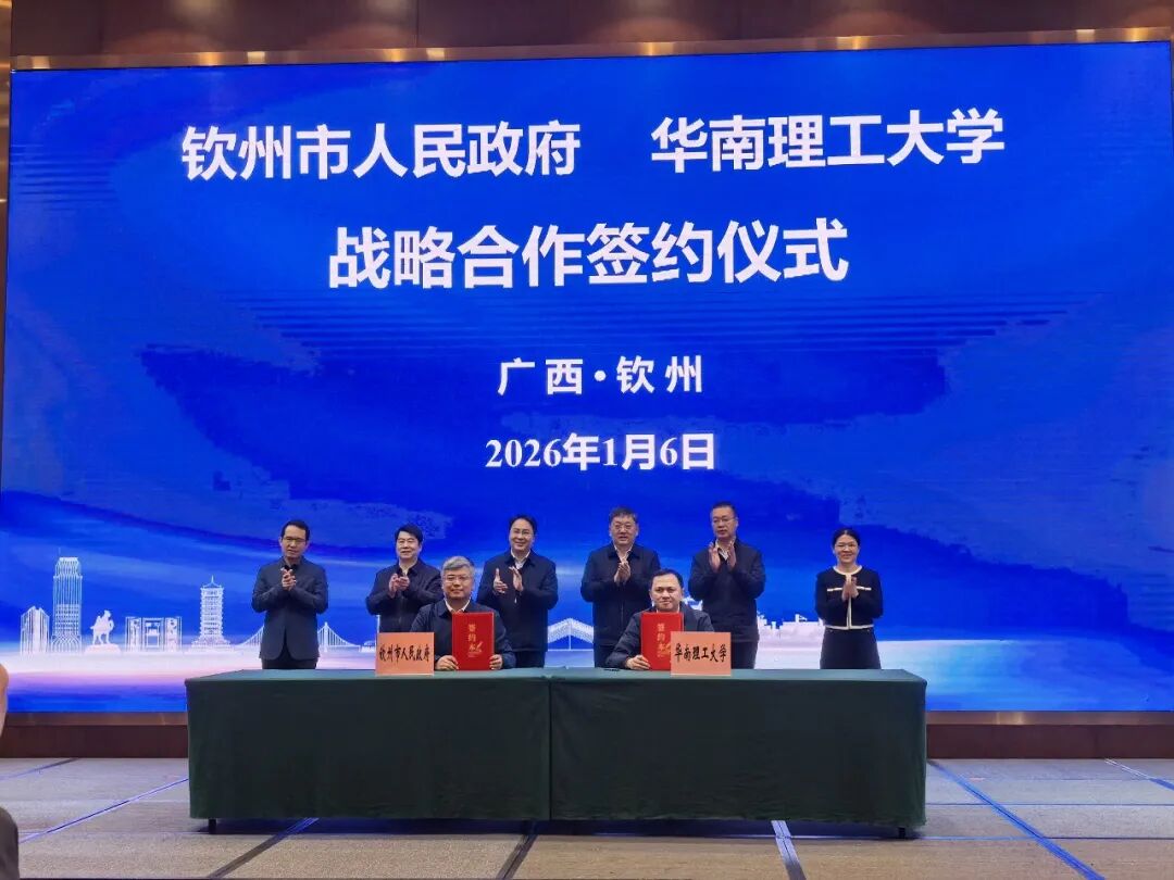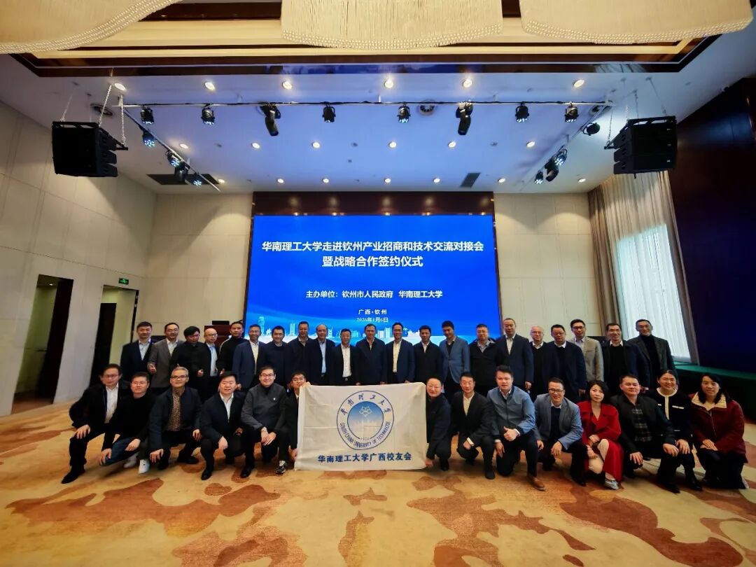 2026 年1 月 6 日,钦州市人民政府与华南理工大学联合活动在广西钦州成功举行,此次活动以 “招商引资、科研攻关、人才培养” 为核心,旨在推动双方深度合作,共同促进钦州产业升级和华南理工大学科研成果的有效转化。钦州市委副书记、市长李玉成,华南理工大学校长唐洪武院士出席了签约及授牌仪式,并邀请了众多华南理工大学校友企业代表共襄盛举。其中,广西鼎和创新科技有限公司总经理周辉携联合创始人兼首席技术专家秦红波作为校友企业代表亮相,展现了企业的风采。